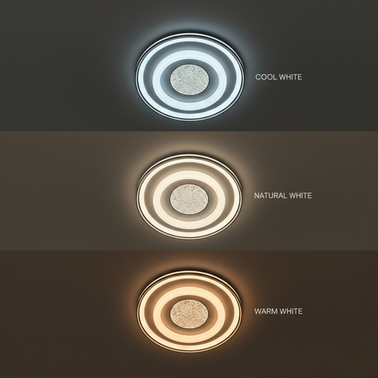 THE AURA LED ceiling light brings elegance and softness to modern interiors with its decorative circular design and crystal-inspired detailing. This modern LED ceiling light creates a warm, premium atmosphere while providing bright and even illumination for everyday living. Key Features 3 Colour CCT: Warm White (3000K), Natural White (4500K),...