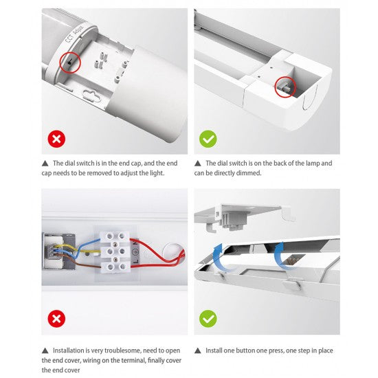 This modern LED batten features tri-colour CCT adjustability, allowing you to choose between different colour temperatures to suit your environment. Whether you need warm lighting for comfort, neutral white for everyday workspaces, or bright daylight for productivity, this fitting provides flexibility and convenience.